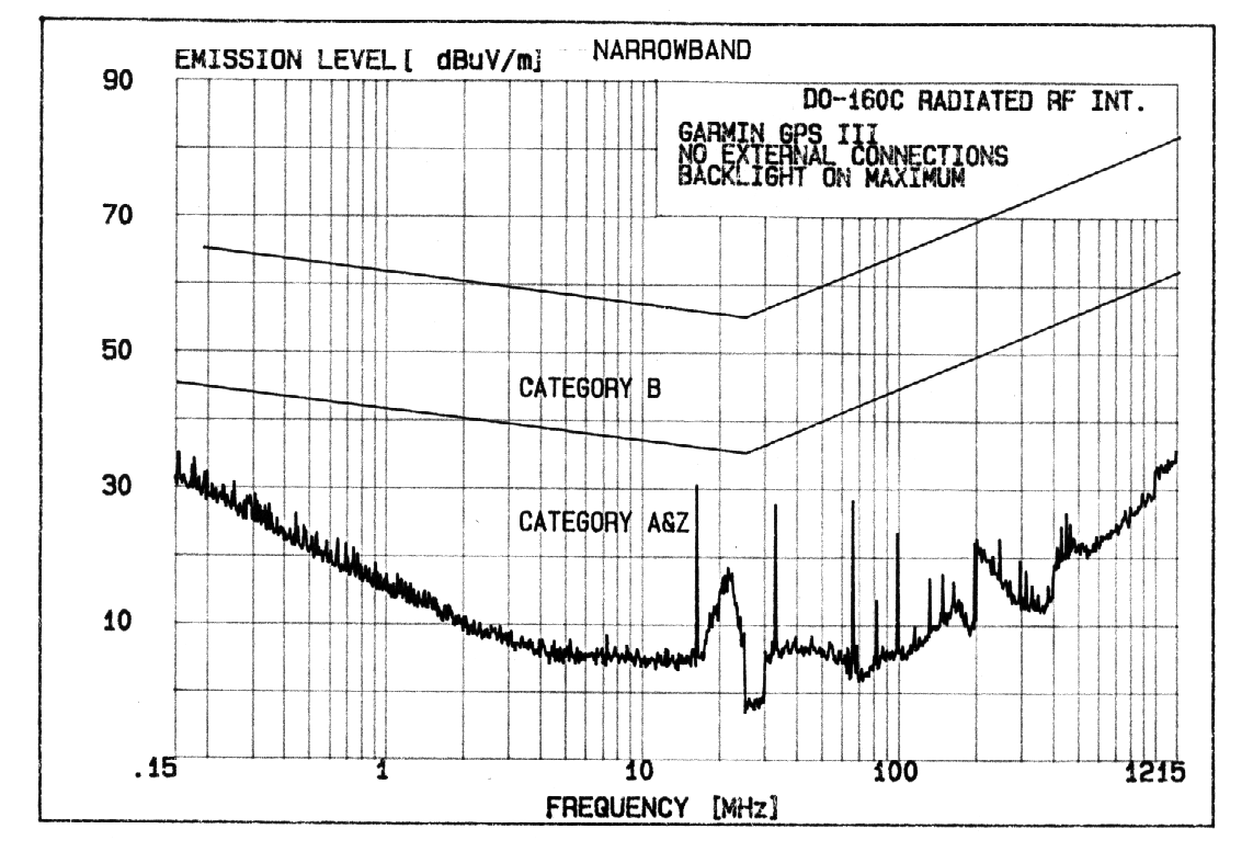 Garmin G-III GPS radiated EMI levels vs DO-160C specification