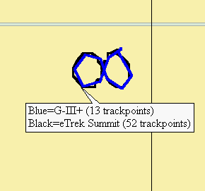 So those wishing to record trail tracks while walking can now use the eTrex Summit, G-III+ (in the Dist. Mode), or the eMap (if the best trail resolution isn't required). Prior to Ver. 2.52, the eMap was not able to record a useful tracklog while walking.