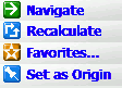 When you click on the screen you get a pop-up menu, with only one of the four options having a clear name. "Set as origin" is easy enough to figure out - but what does "Favorites..." mean? Is it for adding a favorite, picking a favorite, or what? And what the heck is it you are marking as "favorite", anyhow? Turns out it is for adding the currently selected point as a favorite. "Recalculate", however, has nothing to do with the currently selected point at all. |
