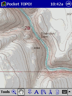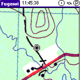 Fugawi 3.0 works in PalmOS devices. Like OziExplorer, Fugawi can take virtually any map image and convert it for use in a PDA (Figure 8). It features include a full set of waypoint, tracklog and routing tools with full GPS functionality. It lacks zoom features. Screen resolution is good. It cost about $30.