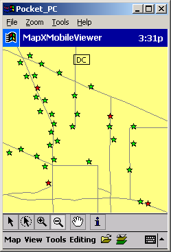 MapInfo’s PocketPCs application is still in development (Figure 10), but should soon be available. Like ESRI’s mapping application, is appears to be for the high-end user. No cost information is available at this time. More information is available at the website http://www.mapxmobile.com.