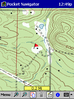 MapTech’s Pocket Navigator works with MapTech Terrrain Navigator series digital mapping in PocketPCs. Pocket Navigator includes no data and only works with MapTech Terrain Navigator software. Hardware requirements include a minimum 4MB of free memory. Software features include creation and editing of waypoint, tracklog and routes. Routes can be "drawn" on-screen and then uploaded into GPS units. It has a "find place" feature and GPS functionality. It has an easy-to-use zoom feature and can provide a high-resolution color image on the PDA (see figure 2 and 2a). MapTech Terrain Navigator topographic mapping software is available for the entire United States. This software costs about $129. for the multi-state series (e.g. Arkansas, Oklahoma and Northeast Texas). MapTech Pocket Navigator costs about $95.