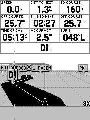 It is interesting that the GPSmap 76 (billed as a marine unit) does not have a Course Deviation Indicator (CDI) -as is present in the Vista (hiking) and the GPS-V (auto navigation). The "compass" acts more like an Automatic Direction Finder (ADF).