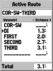 The ROUTE page lists all routes and lets you manage and create them. The GPSmap 76 had 50 routes and each can have up to 50 waypoints.